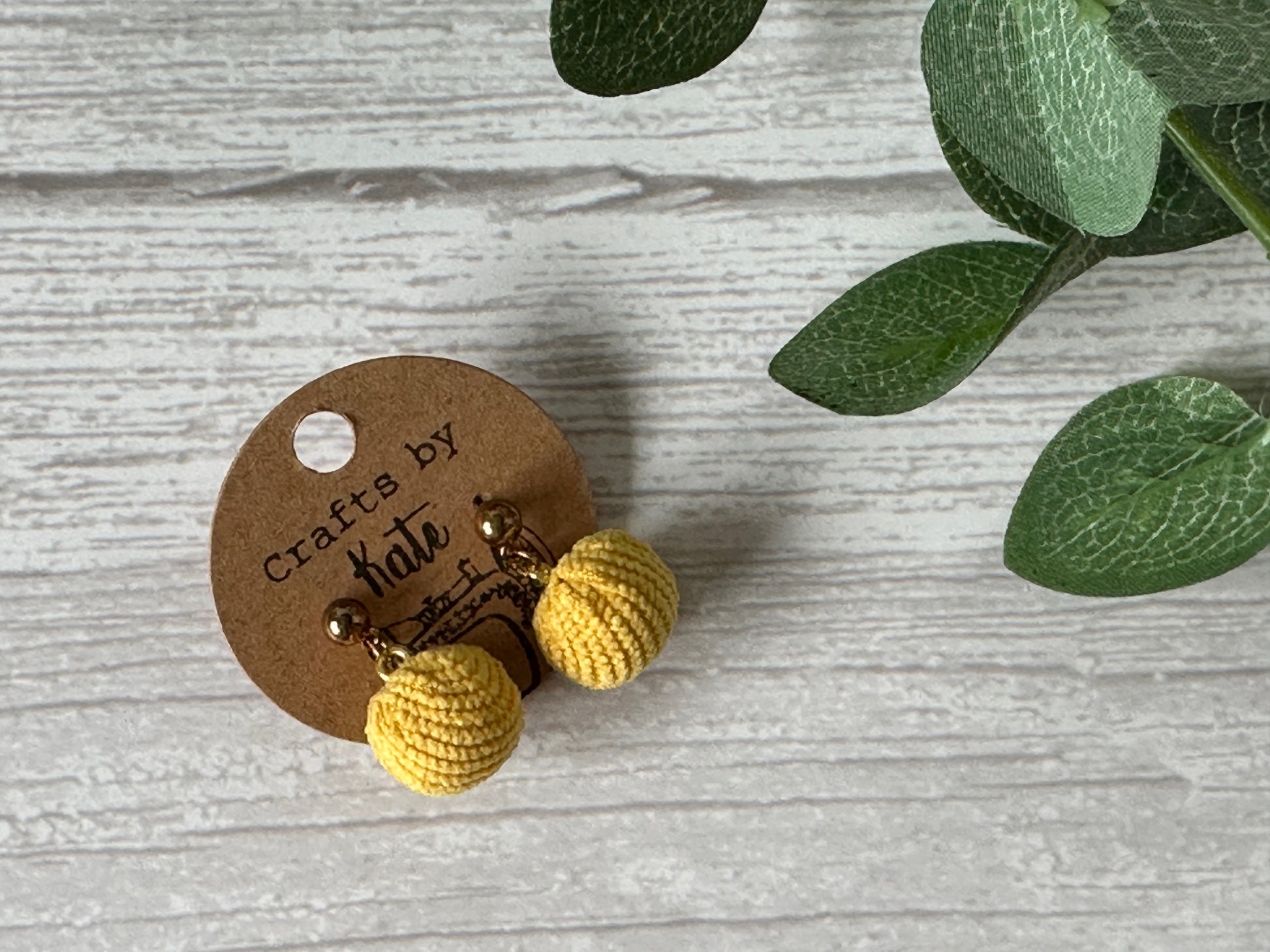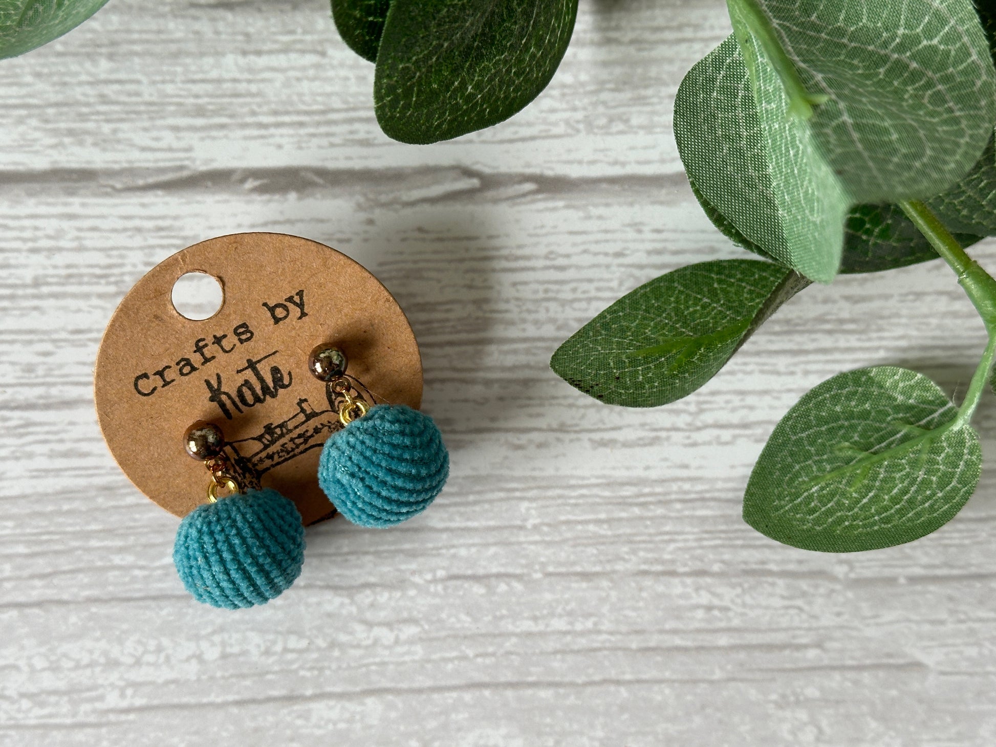 Handcrafted Fabric Pom Pom Earrings with gold plated stud attachments