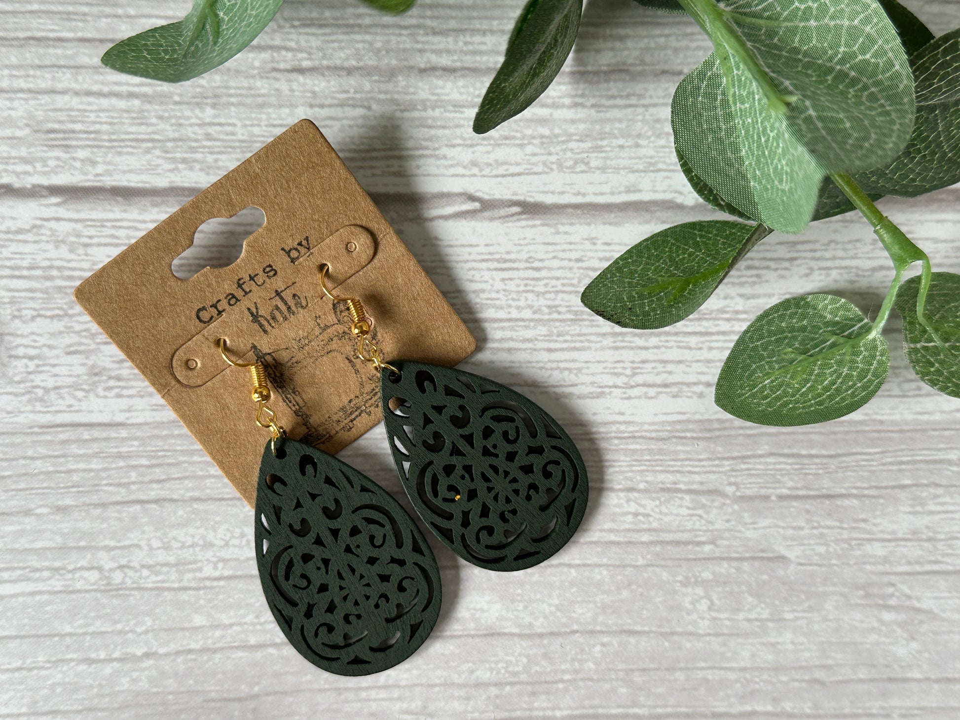 Handcrafted Wood Effect Gold Fishhook Dangle Earrings in a choice of 4 colours.