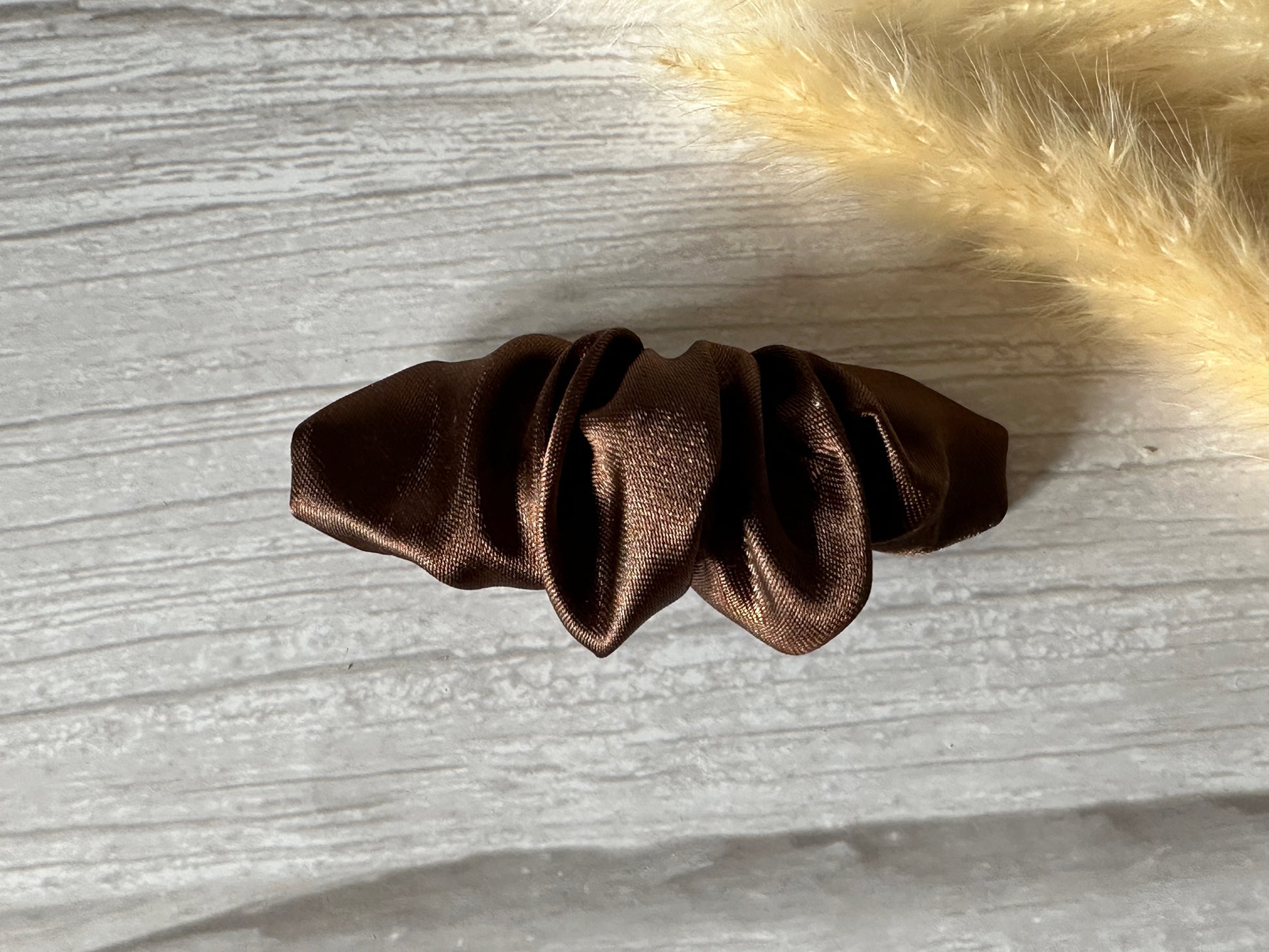 Handcrafted Luxury Statement Silk Chestnut Brown Scrunchie style clip with French Barrette attachment