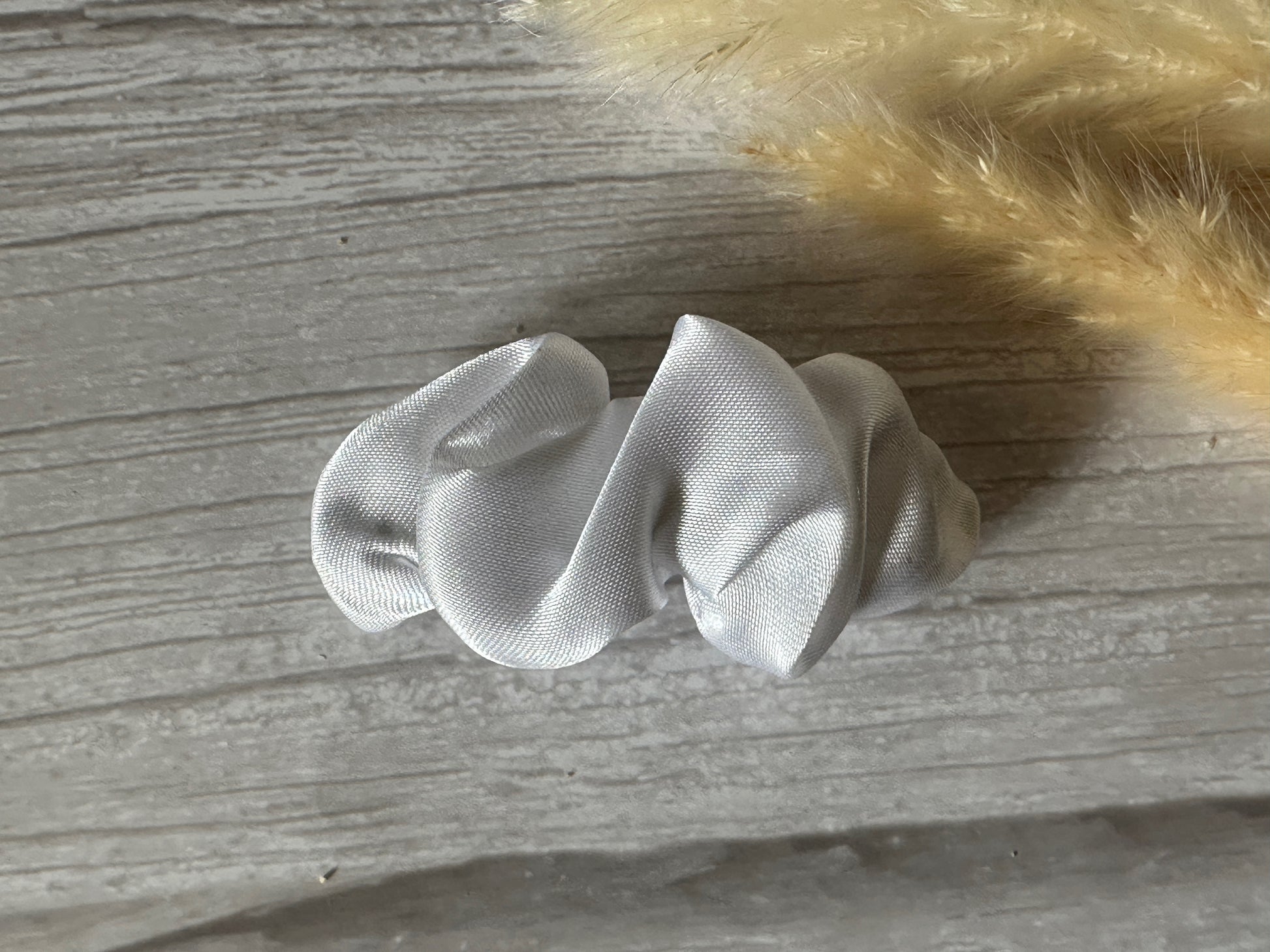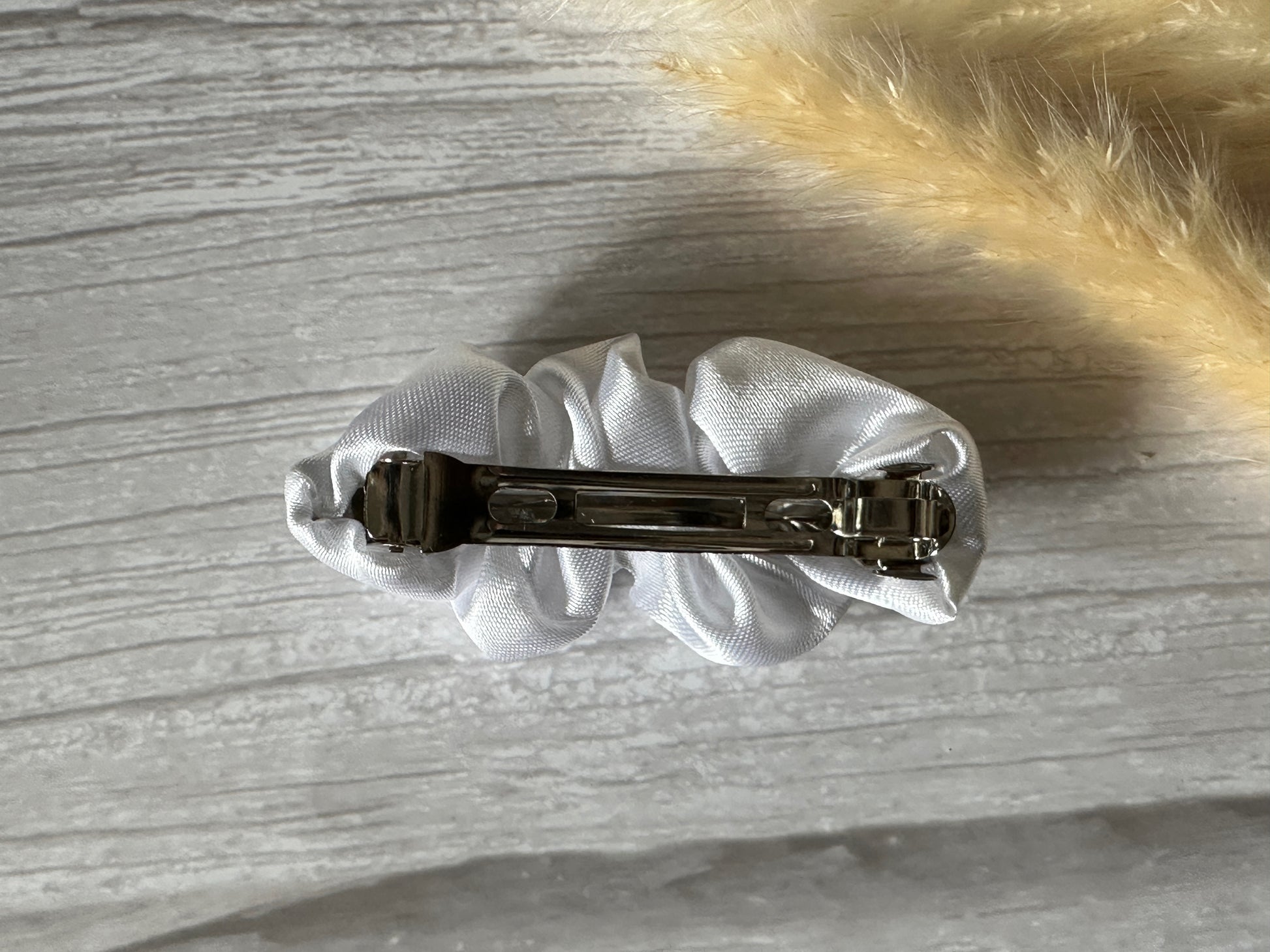 Handcrafted Luxury Statement Silk Ice White Scrunchie style clip with French Barrette attachment